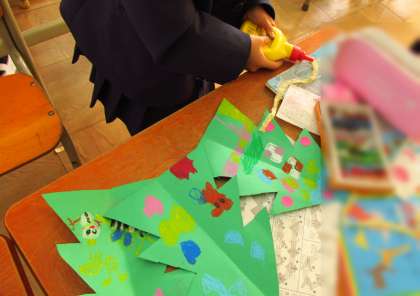 1年生のある教室で自分だけのツリーを作っていました。