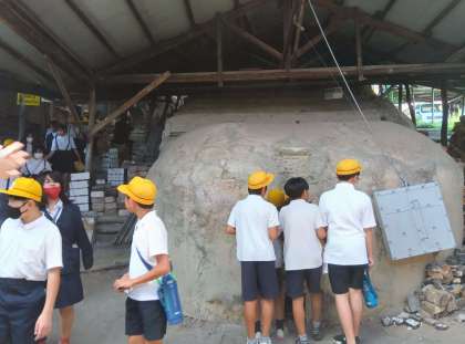 昼食を終えて、宗陶苑での最後の活動、登り窯の見学をしています。