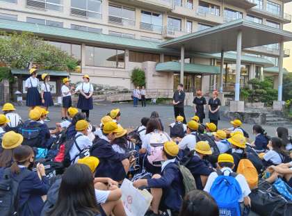 開所式では、宿の方々の温かいお出迎えにしっかり応えるように代表児童があいさつをしていました。