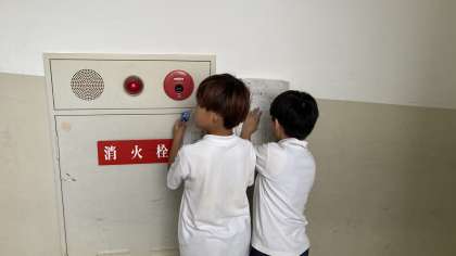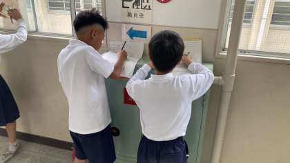 校内地図を持って、消火栓や消火器のある場所を記入していました。