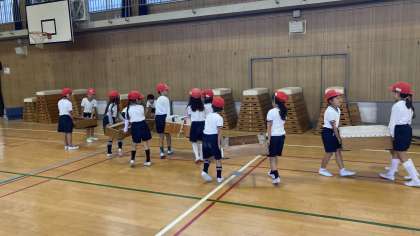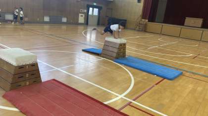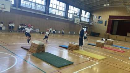 1年生が跳び箱の学習をしていました。