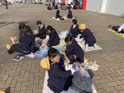 3年 遠足 お弁当たべてます