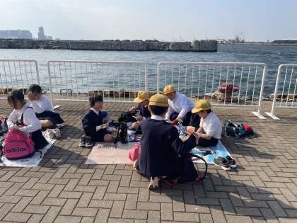 今日はお天気も良く暖かく、海を眺めながらみんなで食べるお弁当は最高においしいです。