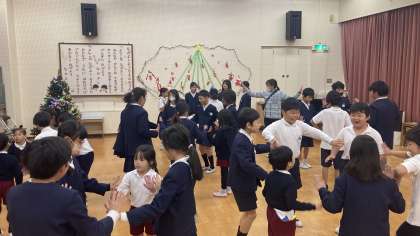 歌や「ももたろう」の劇などを披露した後、そら組さんからクリスマスのダンスを教えてもらい、輪になって一緒に踊りました。