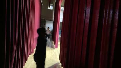 司会担当、舞台裏で物を投げる担当、手を挙げている児童にマイクを届ける担当等、各担当に分かれて手際よくゲームを進めていました。