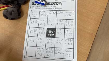 6年生の皆さんが考えるお仕事のイメージを枠にかき、交流していました。