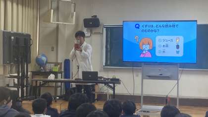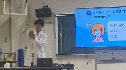 おくすりの種類、使い方などを実験やスライドを使いながらわかりやすく教えていただきました。