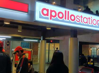 ガソリンスタンドです。ガソリンを、入れたりタイヤのチェックインをしたりしています。