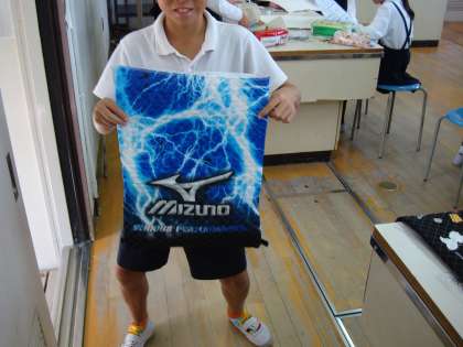 5年生は家庭科の学習でミシンを使ってナップザックを作っています。