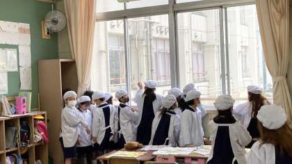 子どもたちは、窓に張り付いて雪の降る様子を見ていました。