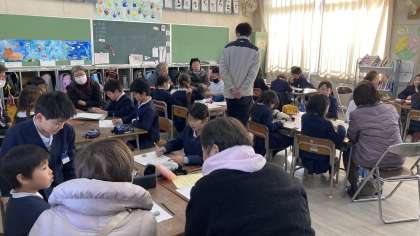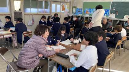 教室では、グループに分かれ昔の学校生活の様子や地域の様子についてお話を伺いました。