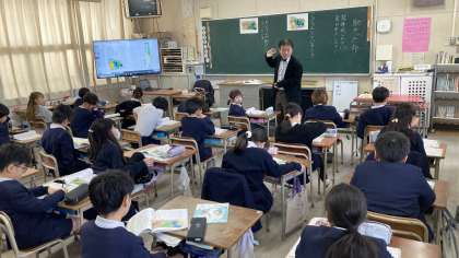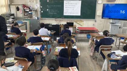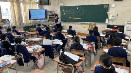 1組と2組は算数を、3組は道徳の学習をしていました。
