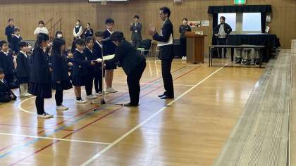 校長先生からは、1年間達成に向けて、続けて取り組めたことが素晴らしい。読書以外にも、学校生活でいろいろなことを続けて取り組めている人がたくさんいてることがうれしいとお話がありました。