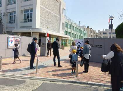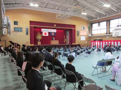 47名の新入生たちは、校長先生のお話を聞いたあと、学校生活の様子を2年生より動画で紹介されました。新一年生は、これから始まる学校生活に胸を膨らませていました。