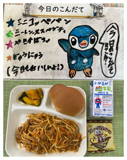ミートソーススパゲティは、児童に大人気で、どのクラスもたくさん食べたていました。