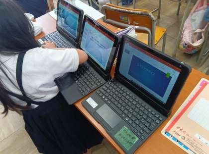 学習の中でタブレット(一人一台端末。個人もちのパソコン。)を使うことが多くなってきています。自分で学習内容をまとめたり学習についての調べ学習をしたり、友達と考えを共有しあったりと、子どもたちはそれぞれ使い方を工夫しながらタブレットを使いこなし、学習をすすめています。