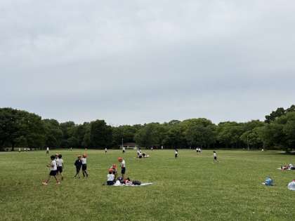 おいしいお弁当を食べて、広場で遊んでいます。