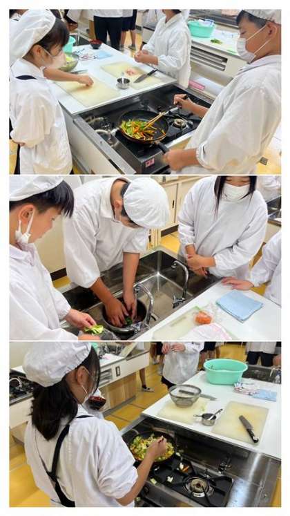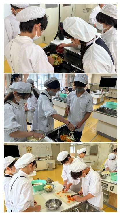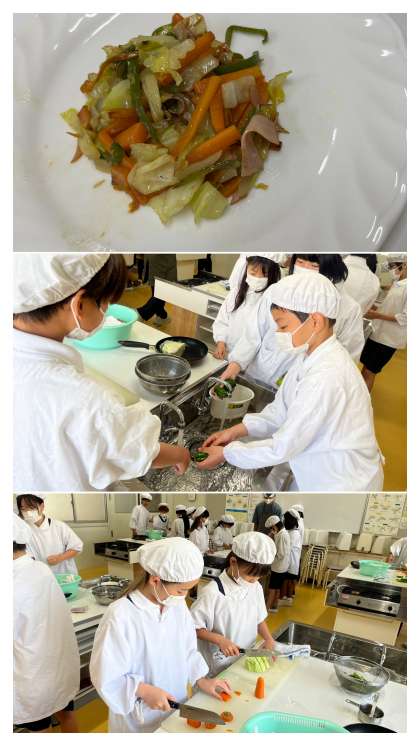 にんじん、ピーマン、キャベツ、ハムを切って、炒めました。
