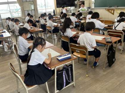 長吉小学校では、毎週水曜日の清掃後に、視写タイムの時間を設けています。