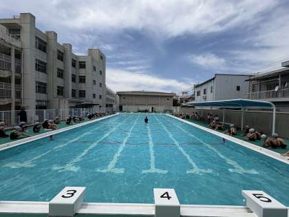 5年生にとって今年度初のプールは、気温も上がり気持ちのよいプール日和となりました。