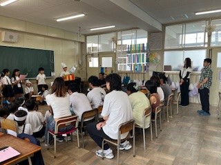 本日、2時間目に日本語アカデミーの学生さんたちが来校されて、3年生と活動を行いました。