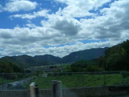 2回目のトイレ休憩を終えました。周りの景色は、山に囲まれた緑一面の様子へと変わってきました。