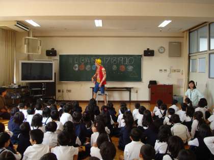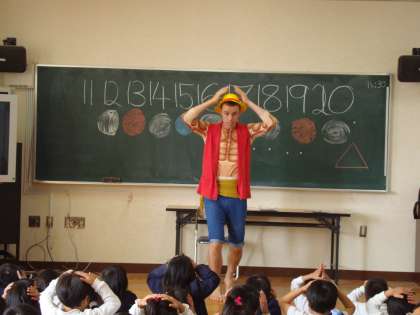 ミック先生が、ハロウィンの仮装でルフィーに変身して授業をしました。