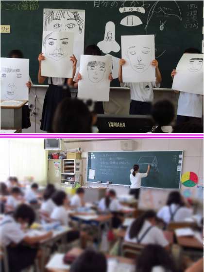 高学年は、自分の顔を鏡でよく見て描き表す図工の学習やメダカの体を顕微鏡を使って調べる理科の学習、お父さんやお母さんが参加してのふれあいドッジボールなどをしていました。