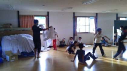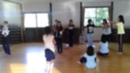 お風呂に一番に入ったクラスは、この後の室内レクの練習をしていました。