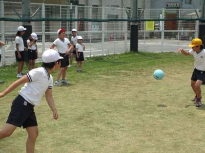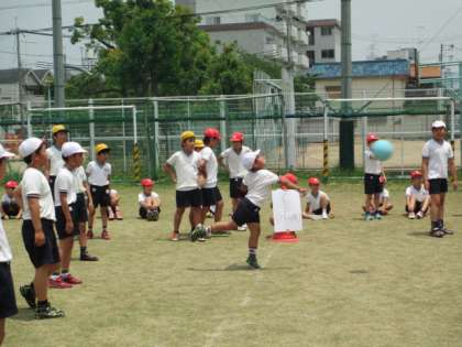 なかよし学年ごとに北運動場でドッジボールをしました。