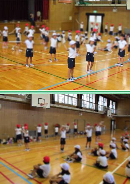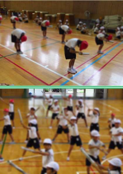 みんなの演技が揃うようにお互いに見あいっこをして確かめていました。