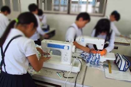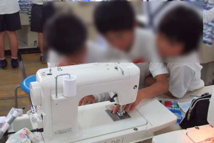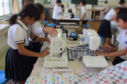 作っている物は「エコバッグ」でした。ミシンの調子が良くないときもあったみたいですが、友だちと教え合ったり、解決方法を考えたりして作業していました。