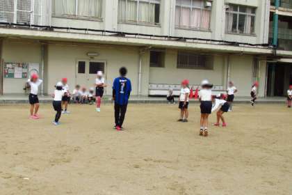 バスケットボールクラブは、コートを2面使って練習試合をしていました。いつも始めと終わりにゴール台を移動させなくてはいけないので大変です。休み時間にもシュートの練習をしている児童をよく見かけます。
