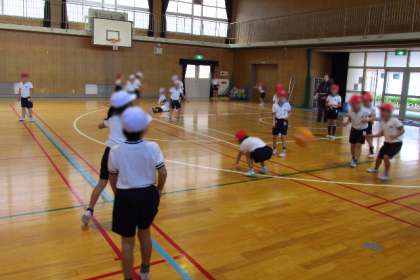 体育館でドッジボールをしていました。