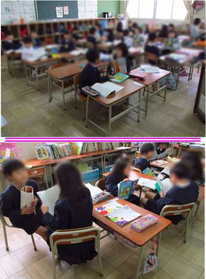 隣りの友だちと向かい合って、国語の学習で考えたクイズを出し合っていました。
