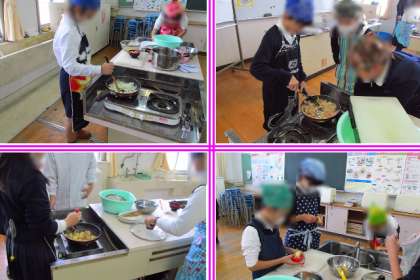 そういうのが苦手な児童は、具材を炒めたり、お皿や使った調理器具を洗ったりしてみんなで協力し合って作業していました。
