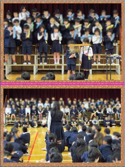今日の発表では合唱が2曲と合奏が1曲です。どれもずっと練習をしてきた曲でたいへん上手でした。6年生も大絶賛していました。