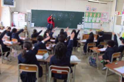 練習をする漢字ノートの使い方を習っていました。一人ひとりに見本のプリントがあるので書き方が分かりやすく、正しく書けているかどうか確かめながらていねいに書いていました。もし、間違えてもすぐに気付いていました。