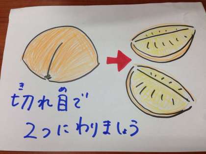 いよかんは1人分が1/2切れなので、むきやすいように切れ目を入れてもらいました。
