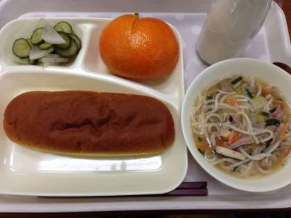 「チャンポン、ピリ辛あえ、いよかん、パンプキンパン、牛乳」です。