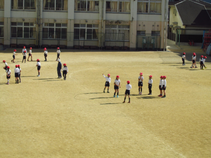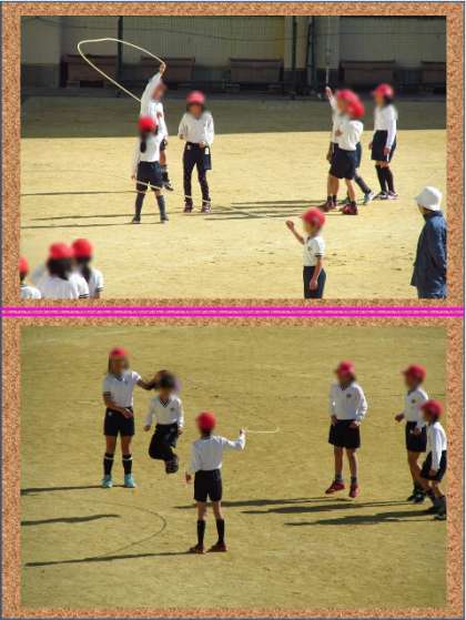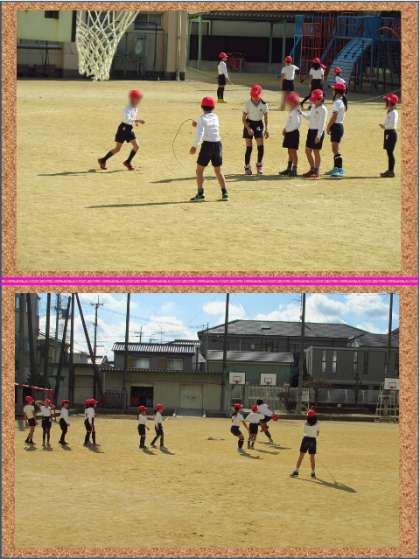 この体育の授業の前は業間休みでマラソンタイムがありました。なので、少し体が温まっています。短なわも元気に跳んでいました。