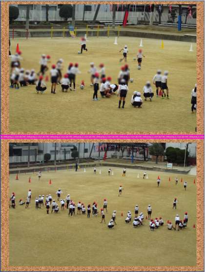 運動場で3クラス合同で体育をしていました。