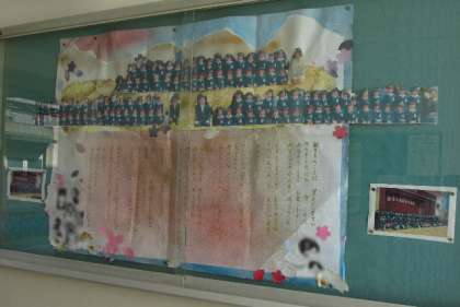 小学校を巣立っていく6年生たちが1年生だった頃の写真です。学年の先生たちがあちこち探して見つけた学級写真から作りました。