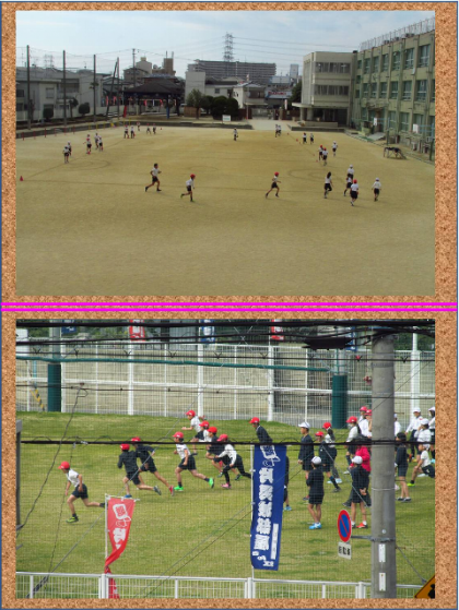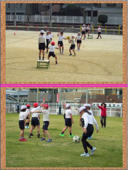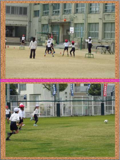 運動場と北グラウンドを使って体育の授業をしていました。