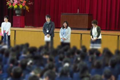 校長先生のお話や新しく来られた教職員の紹介などがあり、いよいよ担任発表です。