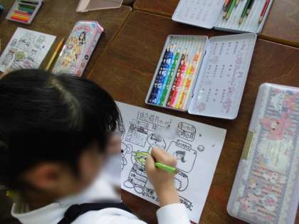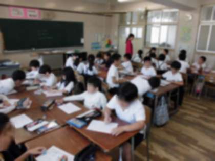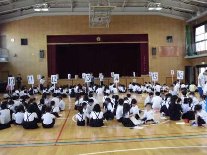 2時間目になかよし学年編成がありました。1・6年生、2・4年生、3・5年生がペア学年として、集会をしたり子ども祭りでお店を出したりして1年間活動します。今日はペアを作って、自己紹介カードを書いて交換しました。1年生も6年生に教えてもらいながら、習いたてのひらがなでカードを熱心に書いていました。最後に講堂で並び方の練習もしました。来週から集会が始まります。