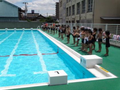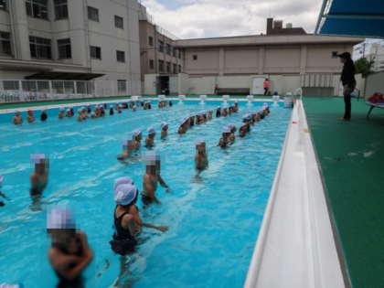 シャワーの浴び方を練習しました。水中列車をしました。冷たい水でしたが、頑張って入りました。