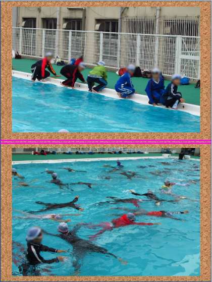 プール水泳の学習で毎年取り組んでいる着衣泳の学習がありました。