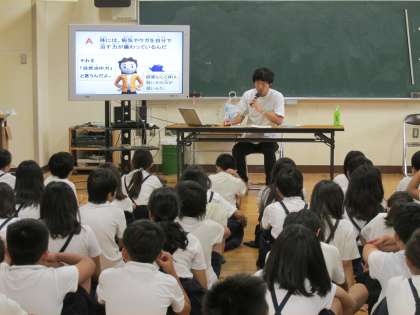 後半には、薬物乱用についてお話をしていただき、違法薬物の恐ろしさについて、映像も見ながら学習しました。