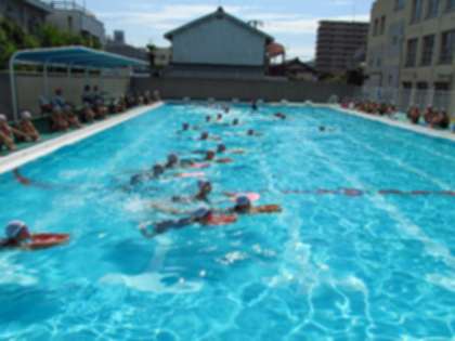 30度を超える暑い日が多くなり、水の中が気持ちよく感じられる日が増えてきました。泳いでいる児童たちも気持ち良さそうです。